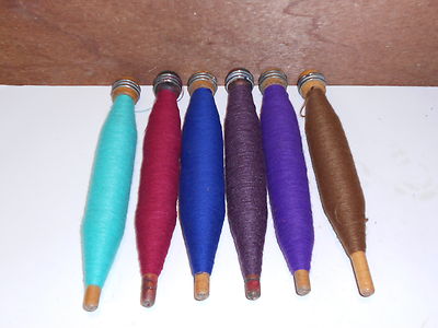 LOT OF 6 SPINDLE BOBBINS WITH YARN