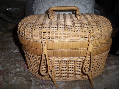 Title (ebay affiliate link): Antique Wicker Bamboo BASKET Sewing Box Vintage PURSE Folk Art STORAGE
