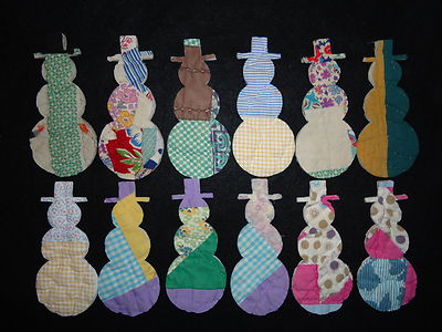 Title (ebay affiliate link): 12 PRIMITIVE ANTIQUE CUTTER QUILT SNOWMEN CHRISTMAS WINTER - FOLK ART
