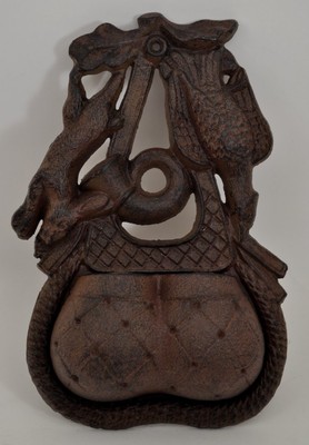 Title (ebay affiliate link): Black Forest Style Cast Iron Rabbit & Pheasant Fireplace or Wall Match Holder