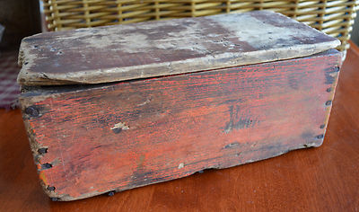Title (ebay affiliate link): Antique Primitive Rectangle Red chippy Paint Wooden Box Rusty Nails Folk Art