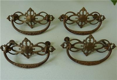 Antique Brass Furniture Drawer Pull Lot #3 4PCS