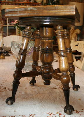Title (ebay affiliate link): ANTIQUE PIANO STOOL / STAND W/ GLASS CLAW & BALL FEET