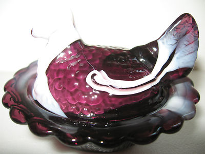 Title (ebay affiliate link): Amethyst and milk slag glass salt cellar hen chicken on nest basket dish purple
