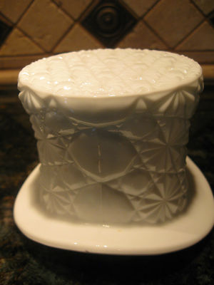 VINTAGE FENTON CRYSTAL DAISY & BUTTON MILK GLASS TOP HAT