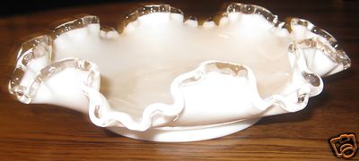 Fenton Silver Crest Milk Glass Ruffle Bowl