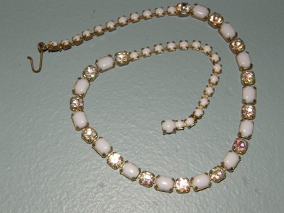 Title (ebay affiliate link): Pretty Vintage Aurora Borealis & White Milk Glass Choker Necklace