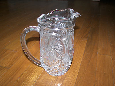 Title (ebay affiliate link): Vintage Glass Pitcher - Pressed Cut Design Juice Milk Water Serving Accessories