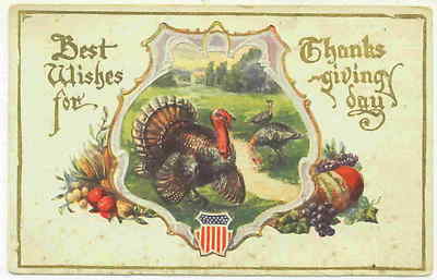 Patriotic Thanksgiving Greetings on Vintage Picture Postcard Unused