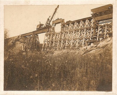 Lehigh Valley Railroad Papa Trestle construction, Honeoye Falls, NY repro card