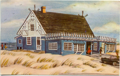 c'60s Sketch Ad POSTCARD Kitty Hawk NC OLD STATION Restaurant LIfe Saving Austin