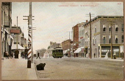 1907c~TROLLEY GENESEE STREET STORES~BARBER SHOP POLE~WAUKEGAN,IL~LYON'S