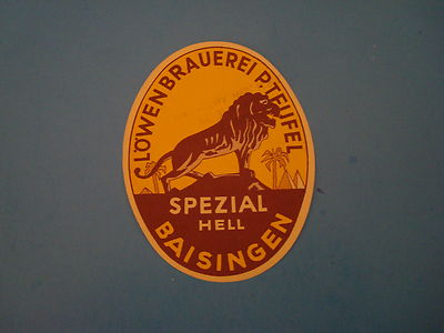 Title (ebay affiliate link): VINTAGE LOWENBRAUEREI P.TFUFEL Beer label -GERMANY- Mint