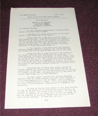 Title (ebay affiliate link): Original JFK Historic Food For Peace Speech - 6/4/63 - Fantastic Content