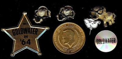 Title (ebay affiliate link): 1964 BARRY GOLDWATER CAMPAIGN TOKEN, PIN-BACK AND CAMPAIGN JEWELRY GROUP