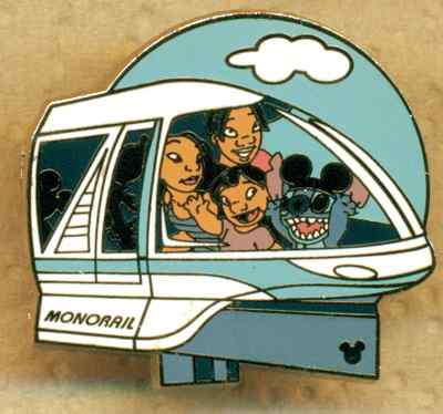 Title (ebay affiliate link): DISNEY 2005 Stitch Lilo Nani & David as tourists taking a ride on Monorail PIN