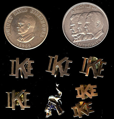 Title (ebay affiliate link): 1950s IKE EISENHOWER CAMPAIGN TOKEN, PIN-BACK AND CAMPAIGN JEWELRY GROUP