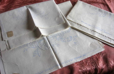 Title (ebay affiliate link): Stamped Linens lot runner Vintage Potting shed Window Tulips pots