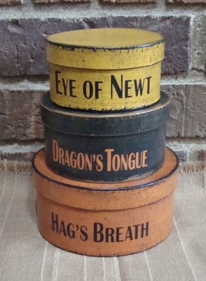 Title (ebay affiliate link): Prim Halloween Round Shaker Boxes HAG'S BREATH ~ EYE OF NEWT ~ DRAGON'S TONGUE