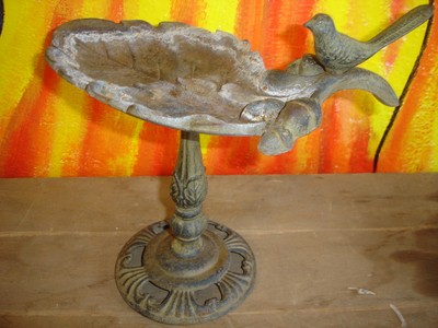 Title (ebay affiliate link): Small Cute Vintage Metal Bird Bath, Outdoor, Garden Decor, Unique and Lovely