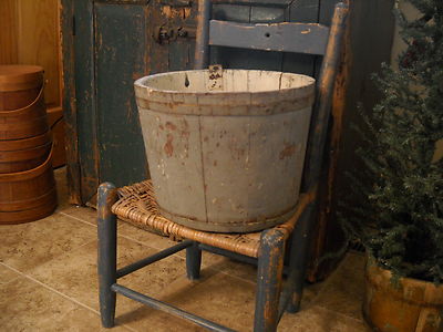 Title (ebay affiliate link): ANTIQUE PRIMITIVE WOOD SAP BUCKET-great grey chippy paint