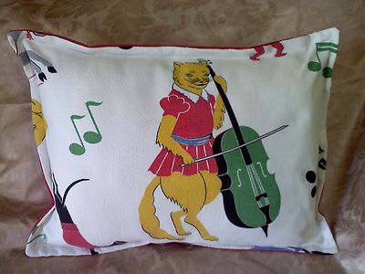 PRIMITIVE FOLK ART PILLOW CAT AND FIDDLE VINTAGE PANEL PILLOW