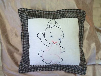 PRIMITIVE WOOL CHECK PILLOW BUNNY QUILT BLOCK
