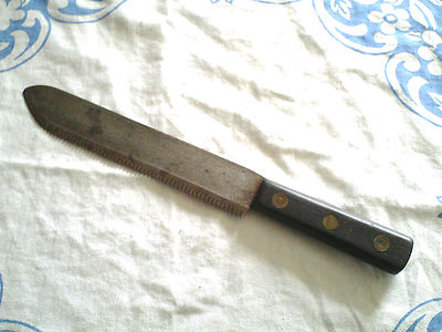 ANTIQUE CARBON STEEL BUTCHER BONE KNIFE 3 PIN & WASHER RIVETS EBONY HANDLE