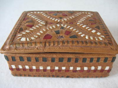 Vintage Tooled & Cut Leather Trinket Box
