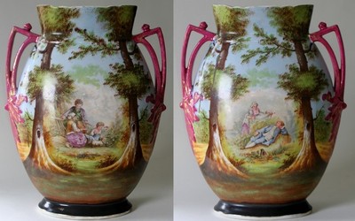Title (ebay affiliate link): Pair Antique Large Porcelain Handled Pillow Vases Decorative Victorian Paintings