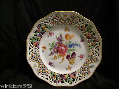 Title (ebay affiliate link): c 1945 Carl Schumann Bavaria Chateau Dresden Flowers Pierced Plate 10 1/4 inch