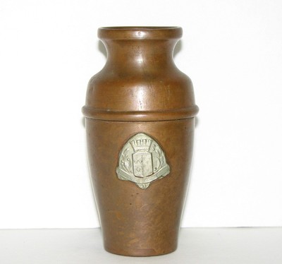 Antique Copper Vase with Brest Emblem 4 1/2"