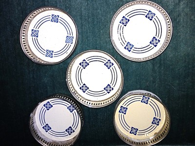 Title (ebay affiliate link): GERMAN ART DECO CERAMIC & METAL COASTERS TRAY SET ANTIQUE 5 PCS 1920s