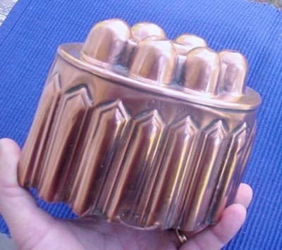 ANTIQUE COPPER JELLY PUDDING MOLD MOULD--MARKED "CM 199 1/2"