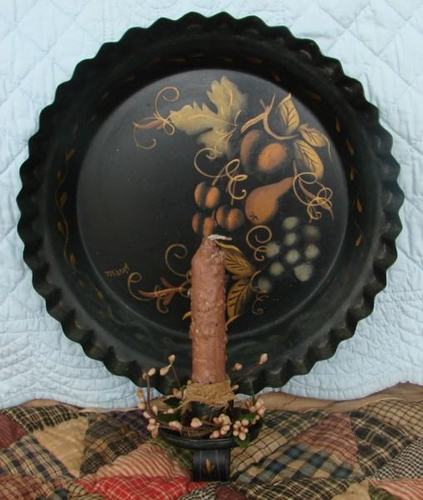 Title (ebay affiliate link): Antique Signed Hand Painted Toleware Primitive Candle Holder~Black Tin~Gorgeous
