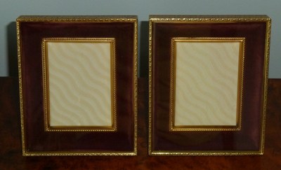 Two MATCHING Antique PHOTO VICTORIAN Shadow Box BRASS Picture FRAMES Wine VELVET