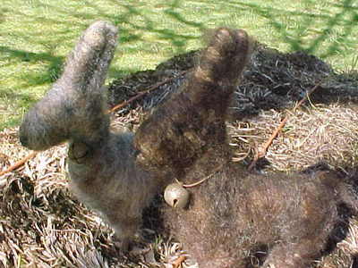 Title (ebay affiliate link): VERY PRIM N FOLK ARTSY NEEDLE FELTED ALPACA WOOL~2~ BUNNIES~ RUSTY BELLS~PFATT~