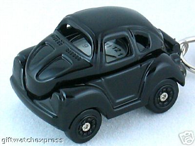 Title (ebay affiliate link): Beetle Car Antique Style Quartz Keychain/KeyRing/Pocket Watch Black Enamel