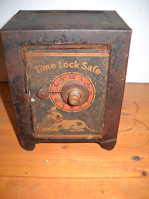 Title (ebay affiliate link): EARLY TIN TIME-LOCK SAFE-1910?-BANK-GREAT PIECE!