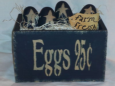 primitive americana wooden eggs & crate country farm house rustic star kitchen