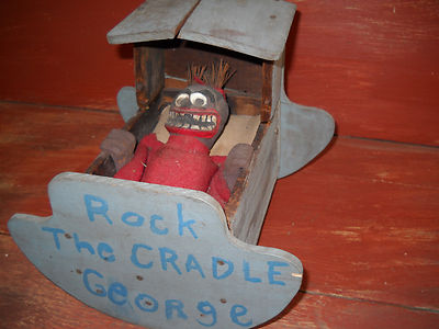 Title (ebay affiliate link): BLACK FOLK ART NEGRO BABY IN CRADLE PROBABLY 1920s.