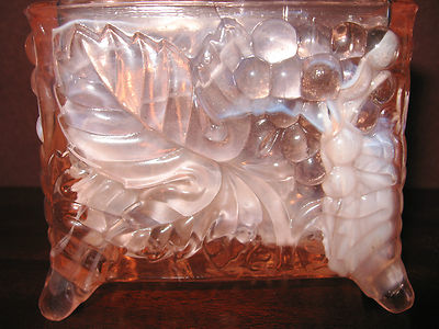 Title (ebay affiliate link): Pink slag glass tabletop toothpick business card holder grape floral milk white