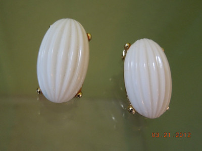 Title (ebay affiliate link): BOGOFF White milkglass earrings carved fluted Designs goldtone clip-ons wow .99
