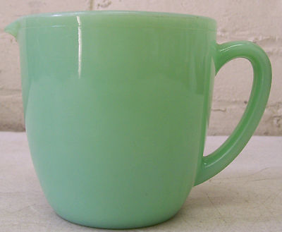 Title (ebay affiliate link): Vintage Fire King Jadeite, Breakfast Milk Pitcher, 4 1/4" x 4 1/4" x 6 1/4"