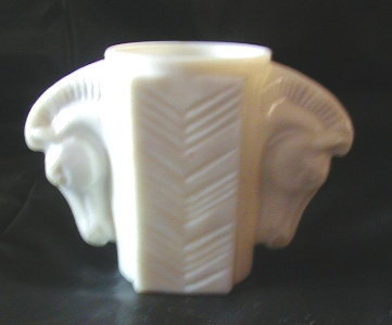 Title (ebay affiliate link): FABULOUS DECO DESIGN SMALL WHITE MILK GLASS VASE WITH HORSE HEADS EITHER SIDE