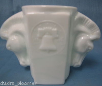 VINTAGE MILK GLASS CIGARETTE HOLDER VASE BICENTENNIAL TROJAN HORSE LIBERTY BELL