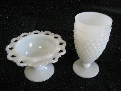 Title (ebay affiliate link): VINTAGE MILK GLASS ANCHOR HOCKING COMPOTE BOWL & HOBNAIL VASE
