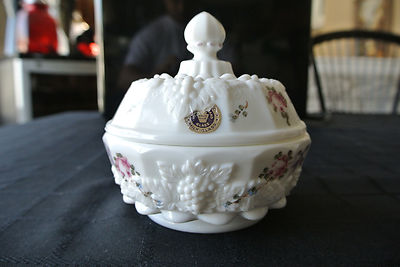 Title (ebay affiliate link): SUPER VINTAGE Westmoreland Milk Glass PANELED GRAPE Hand Painted Vanity Jar MINT