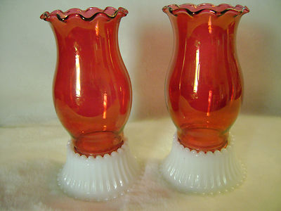 Title (ebay affiliate link): Pair (2) Candle Holders 2 pc. Cranberry Shades (Sconce Size) Milk Glass Bases