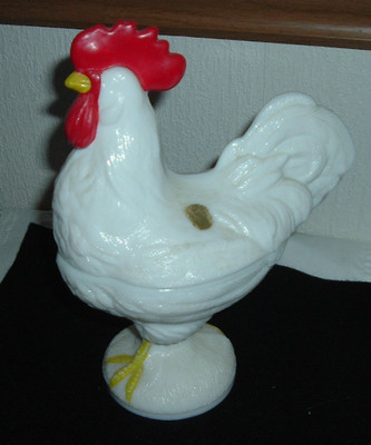 Title (ebay affiliate link): Vintage Milk Glass Marked Westmorland Rooster Egg Style 8 1/2" tall